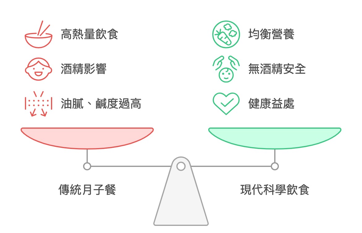 從「麻油雞、燒酒雞」到「均衡健康的月子餐」,這是一種文化的演進,也是對女性身體更友善、更科學的照顧。真正好的坐月子,不在於吃得多補,而在於吃得剛剛好、吃得安全,讓媽媽恢復元氣,也讓寶寶安心成長。