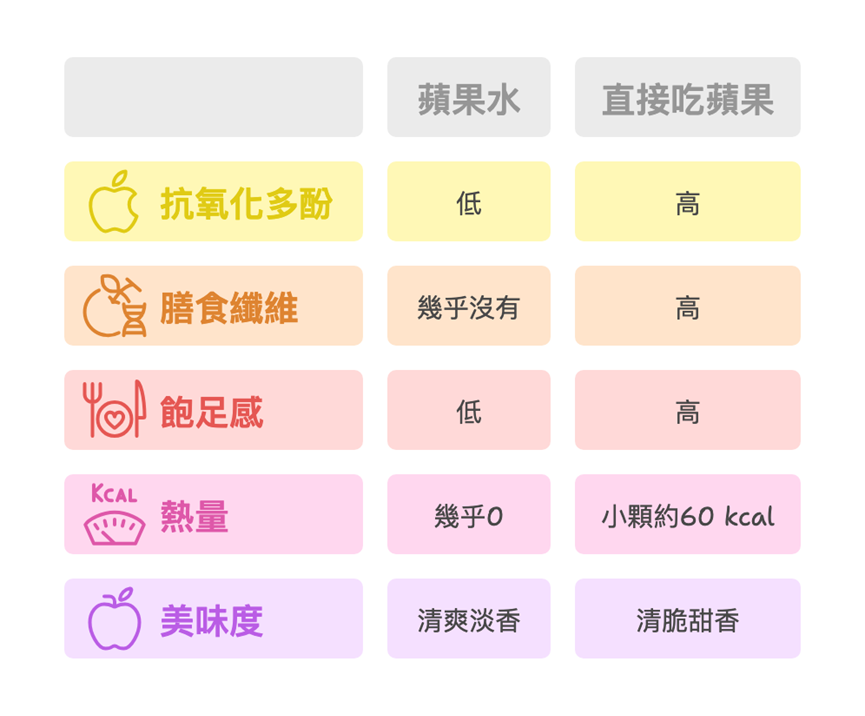 📌 如果你的目標是排便順、控制體重、增強飽足感 → 直接吃蘋果更有效。